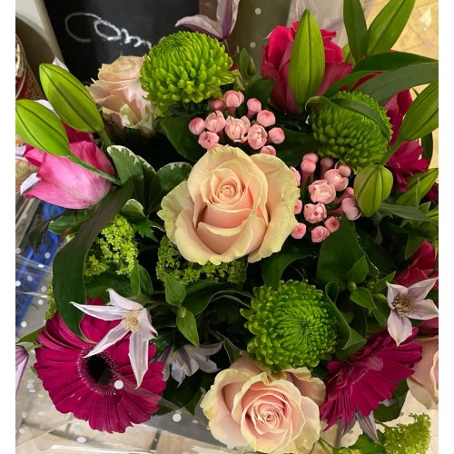 A Jubilation of Roses, Chrysanthemum, Lilies, Gerbera and Clematis.